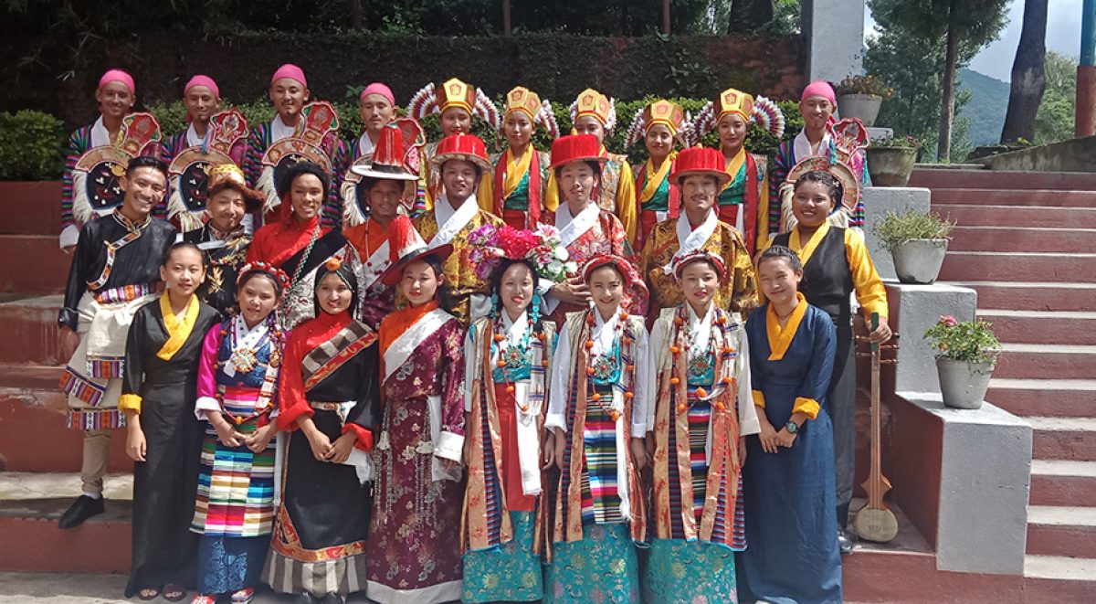 Zwischen den einzelnen Schulhäusern der Namgyal Higher Secondary School in Gokarna/Nepal findet regelmässig ein Wettbewerb in traditionellem tibetischen Tanz und Gesang statt. Diese Gruppe auf dem Foto  erhielt den 1. Platz im Tanz und den 2. Platz im Gesang.