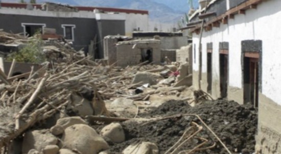 Cyclone damage at the Phuntsokling Settlement in August 2012 |