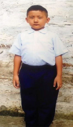 Karma Sonam Yeshi a sept ans. Il est en 2ème classe à l’école primaire Manjushree Primary. Sa sœur est en 7ème classe scolaire aux Villages de l’Enfant Tibétain TCV à Chuntra en Inde. Il aime sa sœur beaucoup. Il habite avec ses parents et grandparents. Sa mère enseigne en école maternelle. Les revenus de la famille doivent tout payer. Il a besoin du soutien pour la scolarisation