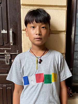 Tenzin Gadhen a neuf ans. Ils est de la première classe de l’École Tibétaine Sambhota à Shillong. Il joue volontiers avec ses amis et aime lire des contes et dessiner. Sa famille habite à Bomdila. Sa mère travaille au terroir et gagne peu pour les dépenses d’une famille